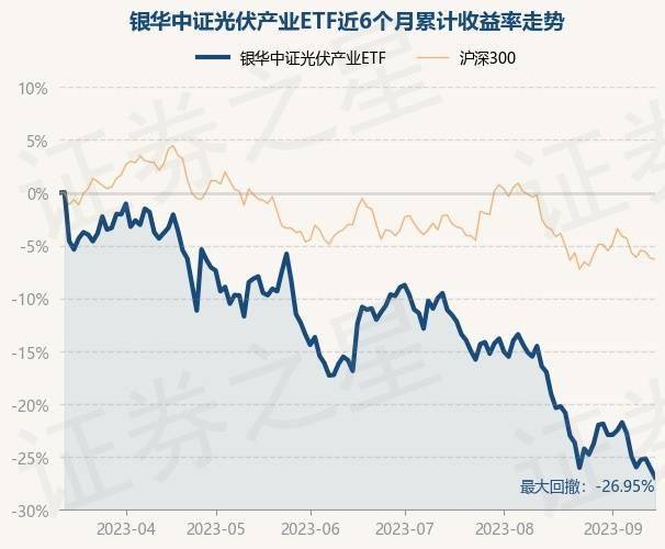 9月14日,银华中证光伏产业ETF最新单位净值为0.8256元,累计净值为0.8256元,较前一交易日下跌1.17%。历史数据显示该基金近1个月下跌11.97%,近3个月下跌12.08%,近6个月下跌26.9%,近1年下跌38.93%。该基金近6个月的累计收益率走势如下图: