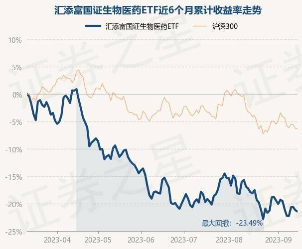 9月14日,汇添富国证生物医药ETF最新单位净值为0.4309元,累计净值为0.4309元,较前一交易日下跌0.32%。历史数据显示该基金近1个月下跌5.07%,近3个月下跌4.01%,近6个月下跌21.41%,近1年下跌20.51%。该基金近6个月的累计收益率走势如下图: