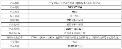2023年9月14日,公司与平安银行签订了购买理财产品协议,具体情况如下: