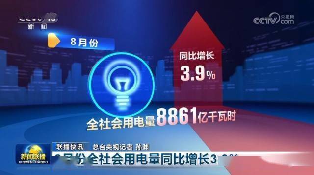 8月份全社会用电量同比增长3.9%