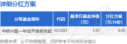 9月15日发布《中欧兴盈一年定期开放债券型发起式证券投资基金分红公告》。本次分红为2023年度的第二次分红。公告显示,本次分红的收益分配基准日为9月9日,详细分红方案如下: