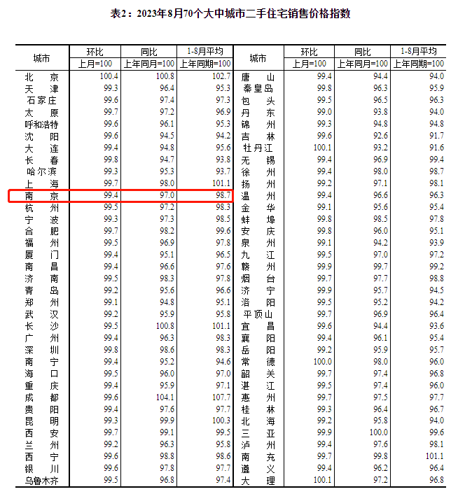 数据显示,2023年8月南京新房价格环比下跌0.4%,同比下跌0.2%。二手房价格环比下跌0.6%,同比下跌3%。