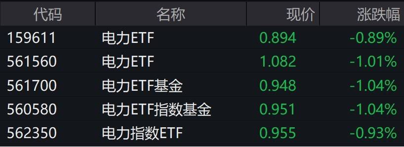 原标题:电力股走弱,电力ETF、电力ETF基金等跌逾1%