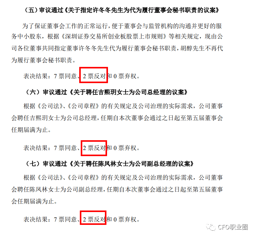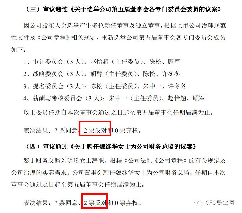 对于《关于聘任魏继华女士为公司财务总监的议案》,两位董事的反对理由为: