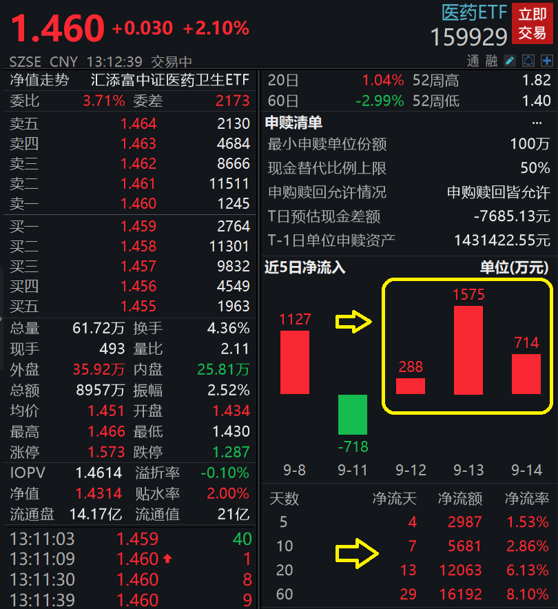 值得注意的是,医药ETF(159929)近日资金面火爆!上交所数据显示,医药ETF(159929)最近3日连续吸金,合计近2600万元!最近20日累计获得资金净申购近1.21亿元!目前最新规模已经突破20亿元大关!
