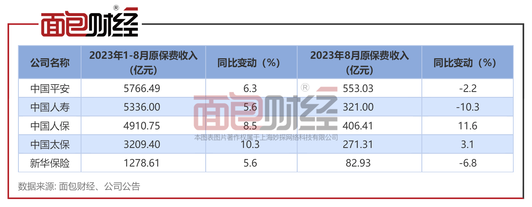 经面包财经测算,2023年8月,公司实现原保费收入82.93亿元,同比下降6.8%,与其他上市险企相比,新华保险的单月原保费收入降幅较大。