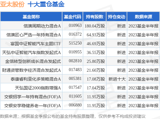 根据2023基金半年报公募基金重仓股数据,重仓该股的公募基金共42家,其中持有数量最多的公募基金为信澳周期动力混合A。信澳周期动力混合A目前规模为18.88亿元,最新净值1.2667(9月14日),较上一交易日上涨0.12%,近一年下跌26.73%。该公募基金现任基金经理为李淑彦。李淑彦在任的基金产品包括:信澳匠心臻选两年持有期混合,管理时间为2020年10月30日至今,期间收益率为-1.93%;信澳匠心严选一年持有混合A,管理时间为2022年9月7日至今,期间收益率为-18.84%;信澳鑫享债券A,管理时间为2023年3月15日至今,期间收益率为-1.87%。