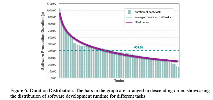 平均而言,ChatDev 每个软件生成 17.04 个文件,软件生产时间为 409.84 秒,不到 7 分钟,制造成本为 0.2967 美元。审核员和程序员之间的相互讨论有助于识别和修改了近 20 种类型的代码漏洞,而测试人员和程序员之间的讨论最终识别和解决了超过 10 种类型的潜在错误。