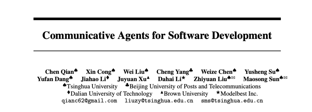 针对这项实验,他们还发表了一篇标题为《Communicative Agents for Software Development》(https://arxiv.org/pdf/2307.07924v3.pdf)的论文,分享了全过程,并将项目在 GitHub 上开源出来:https://github.com/OpenBMB/ChatDev