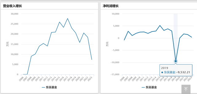观察东吴基金成立以来的经营情况,东吴基金的营收与净利润波动比较大。
