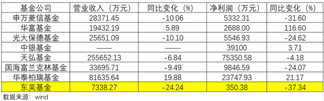 2004年是公募市场的“大年”,这一年市场共计有12家公募公司成立。我们统计披露上半年经营数据的公司一共有8家,其中中银基金只披露了净利润没有披露营收。对比发现,东吴基金在同一年成立的公募公司中,经营情况下滑是比较多的。