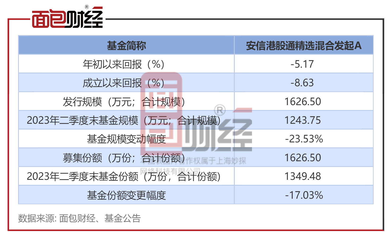 该基金经理单独管理的产品安信港股通精选混合发起规模仅1243.75万元。截至2023年9月14日(下同),该产品累计运行约17个月,净值累计亏损8.63%。