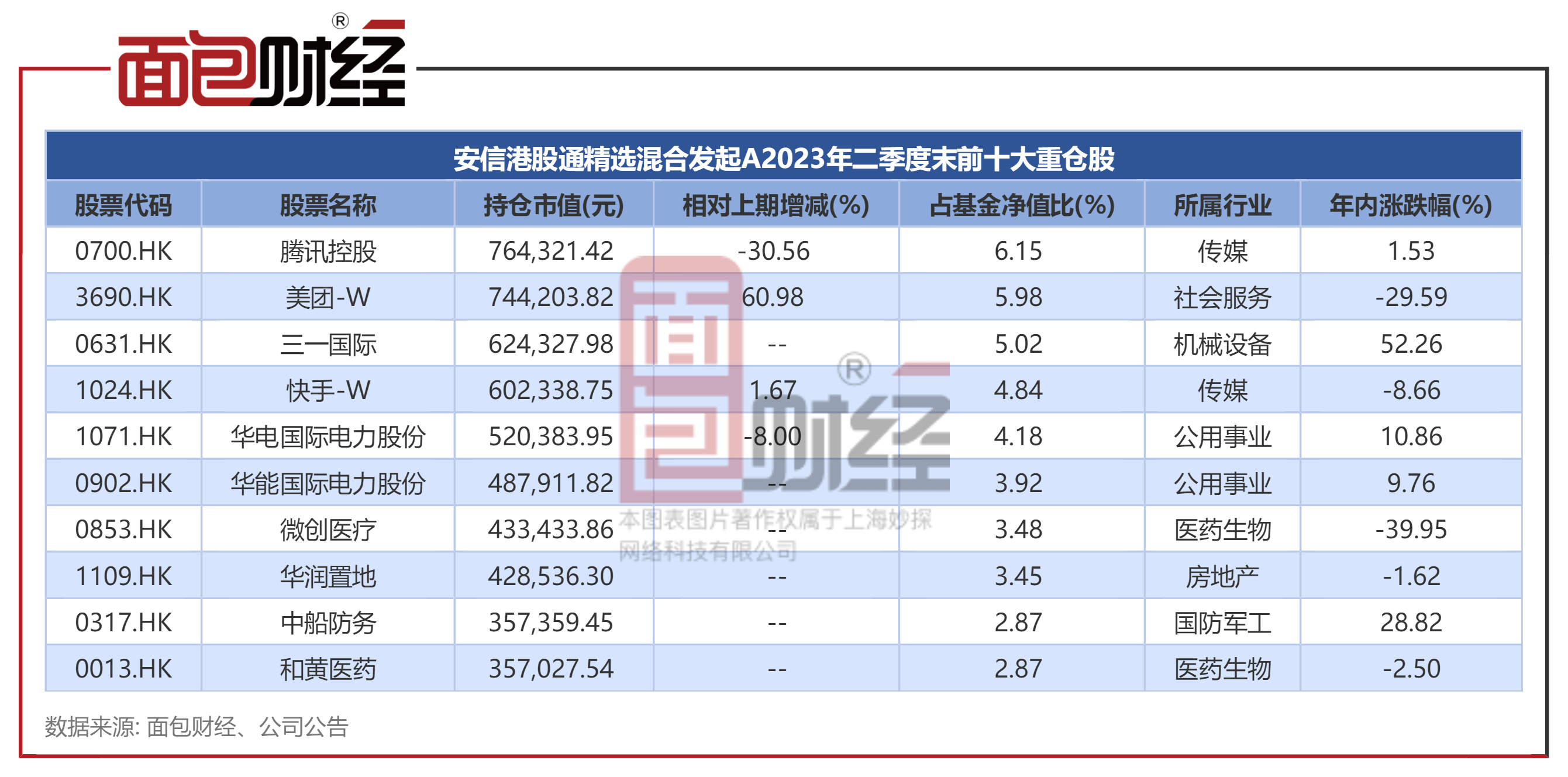 前三大重仓股:腾讯控股、美团-W、三一国际