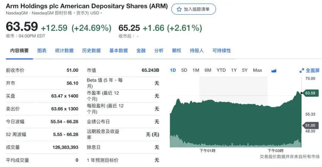 图|ARM首日大涨24.69%