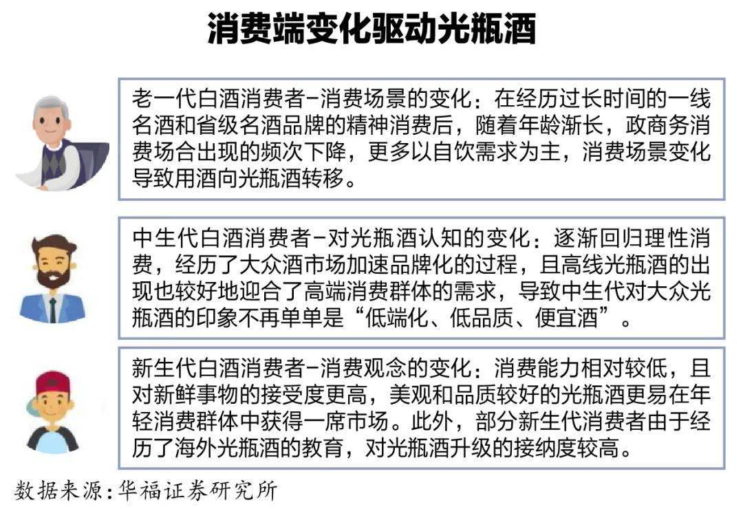 从老一代、中生代和新一代消费者对消费者画像进行粗略拆分,消费端对光瓶酒升级的支撑力仍足。