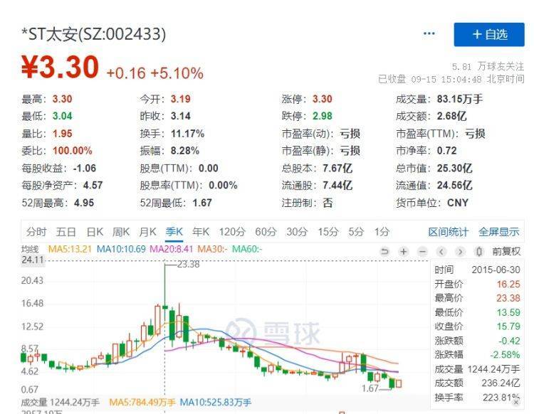 据此前公告,*ST太安的经营状况已是岌岌可危。9月14日晚间公告显示,截至本公告披露日,股东太安堂集团累计被冻结股份约1.34亿股。股东柯少芳累计被冻结股份650万股。8月19日公告称,公司拟向法院申请重整及预重整,以化解公司债务、经营危机。