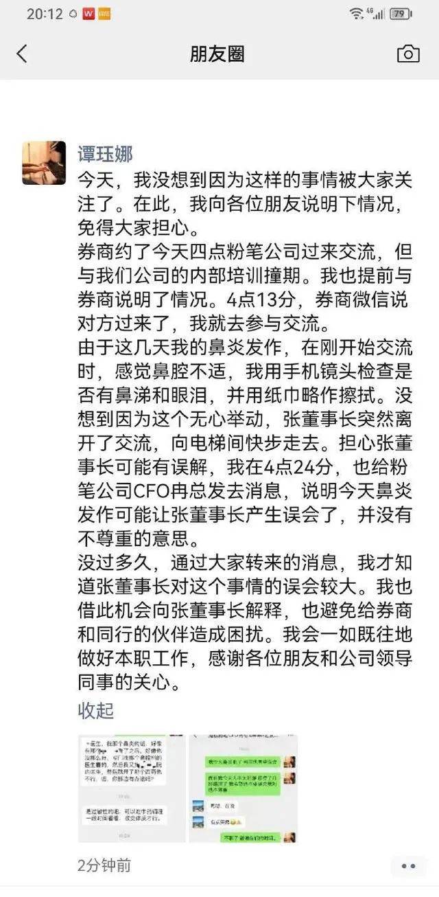 随后,两人的微信朋友圈截图在各个平台“疯传”,引起众多投资者关注。