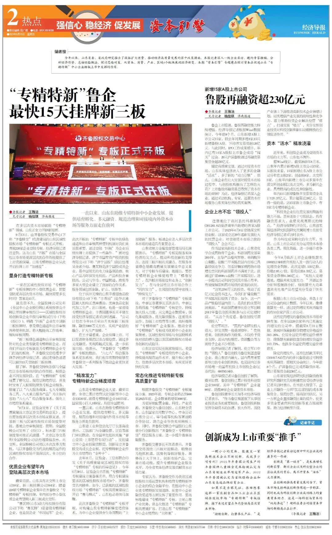 在多层次资本市场赋能“专精特新”领域,山东正全力开辟新局面。
