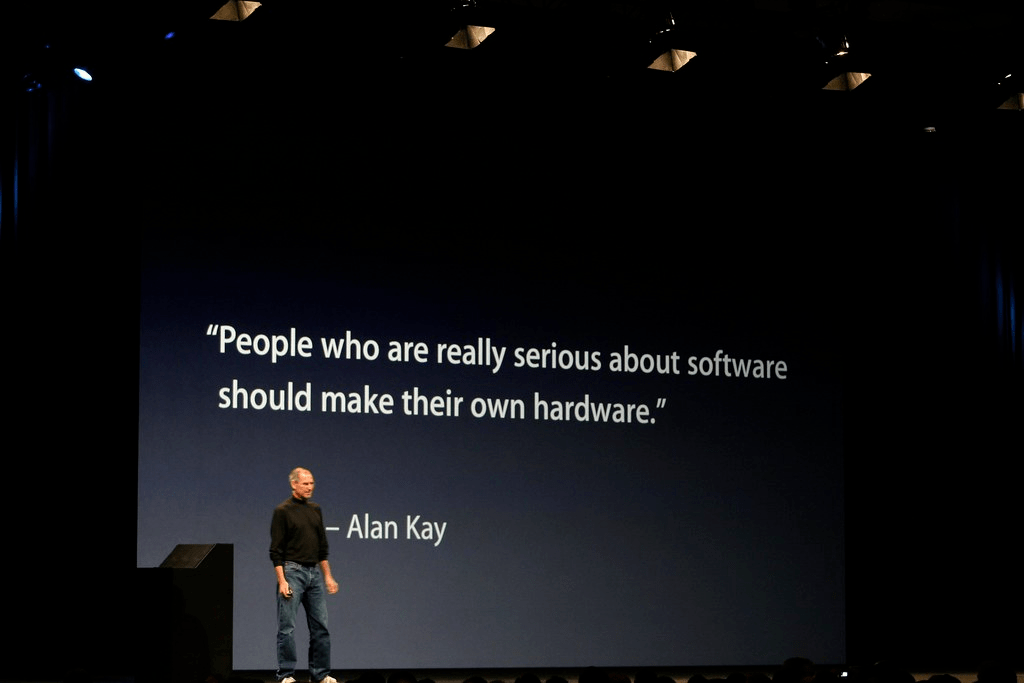 在 16 年前第一款 iPhone 诞生时,乔布斯引用了计算机图像接口先驱 Alan Kay 的名言: “ 真正认真对待软件的人,应该自己制作硬件。 ”