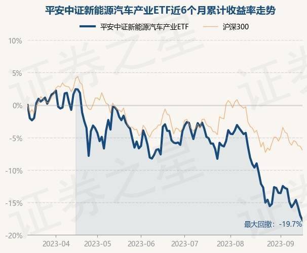 9月15日,平安中证新能源汽车产业ETF最新单位净值为1.7246元,累计净值为1.7246元,较前一交易日下跌0.89%。历史数据显示该基金近1个月下跌9.52%,近3个月下跌14.89%,近6个月下跌17.74%,近1年下跌30.12%。该基金近6个月的累计收益率走势如下图:
