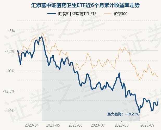 9月15日,汇添富中证医药卫生ETF最新单位净值为1.4562元,累计净值为1.4562元,较前一交易日上涨1.73%。历史数据显示该基金近1个月下跌1.14%,近3个月下跌6.44%,近6个月下跌12.08%,近1年下跌6.38%。该基金近6个月的累计收益率走势如下图: