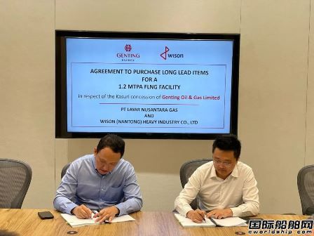 9月8日,云顶石油天然气有限公司(GOGL)通过其全资间接子公司PT Layar Nusantara Gas(PTLNG)与惠生海工附属公司惠生(南通)重工有限公司签订了一份有限开工通知协议(Limited Notice to Proceed Agreement,简称“LNTP协议”),将为一艘年产量120万吨的浮式天然气液化生产设施(FLNG)采购价值4303万美元的长周期设备。