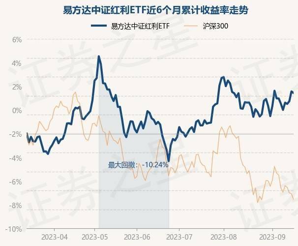 9月15日,易方达中证红利ETF最新单位净值为1.3492元,累计净值为1.4952元,较前一交易日下跌0.16%。历史数据显示该基金近1个月上涨0.94%,近3个月上涨2.98%,近6个月上涨4.27%,近1年上涨5.61%。该基金近6个月的累计收益率走势如下图:
