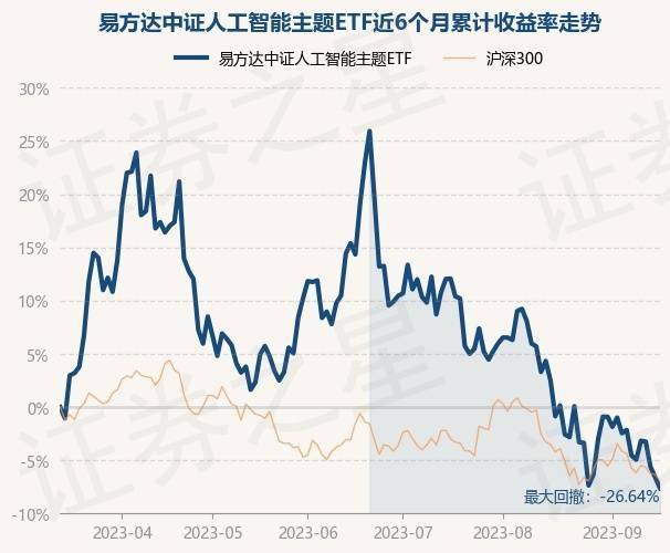 9月15日,易方达中证人工智能主题ETF最新单位净值为0.7586元,累计净值为0.7586元,较前一交易日下跌1.08%。历史数据显示该基金近1个月下跌9.86%,近3个月下跌19.17%,近6个月下跌7.56%,近1年上涨13.09%。该基金近6个月的累计收益率走势如下图: