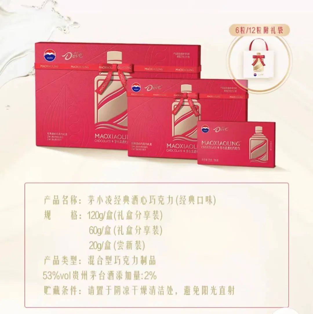 事实上,从价格来看,市面上消费者最为熟知的条状43克德芙巧克力,零售价仅在8元左右。而此次茅台和德芙联名推出的巧克力礼盒里的酒心巧克力单价却在14元/粒~17元/粒,似乎并非普通消费者能接受的价格。因此,业内专家分析,这更多便偏礼品属性,而不是消费属性。