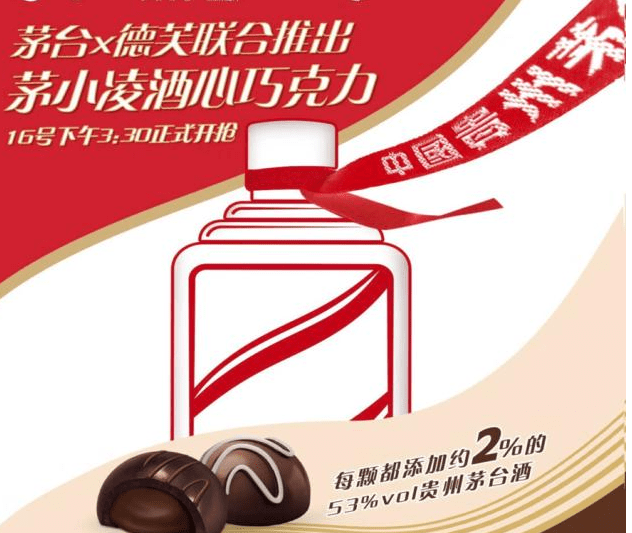 9月16日15点30分,茅台与德芙联名的酒心巧克力上架。上架后,官方店铺秒被抢光。同一时间,京东超市涌入海量消费者,酒心巧克力开售仅1分钟所有商品便被抢光。