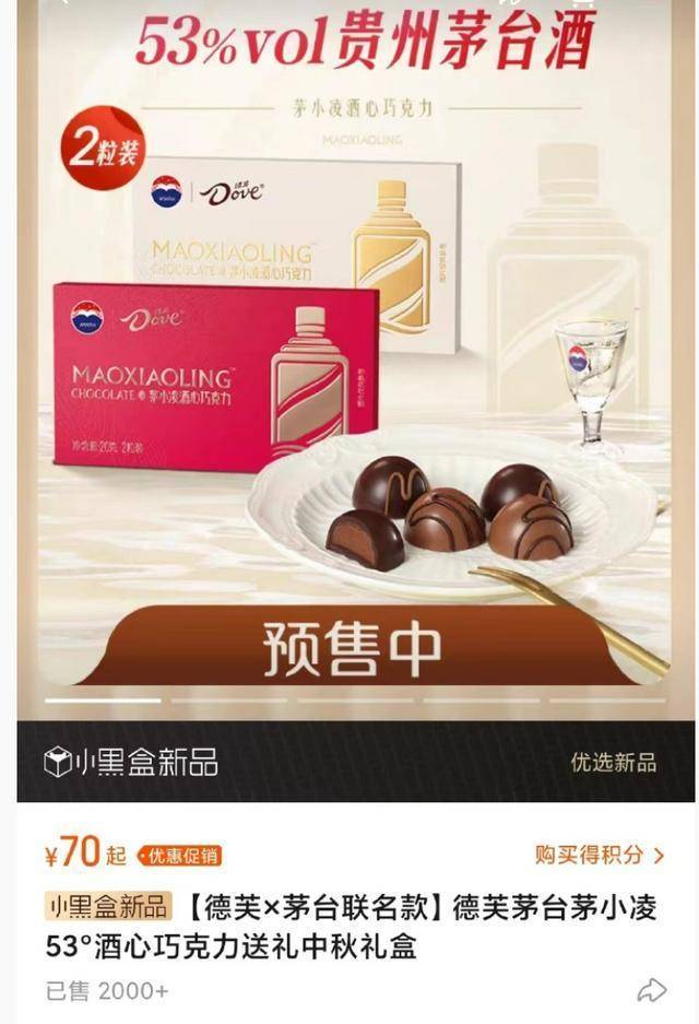 据潮新闻报道,9月14日,继茅台酱香咖啡后,茅台联手德芙的茅小凌酒心巧克力官宣即将上线。