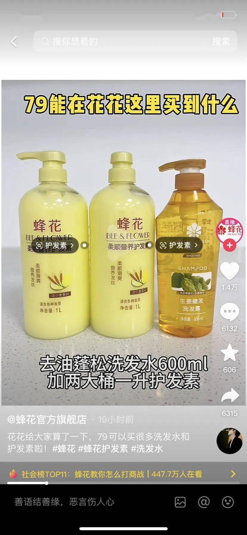 当晚,蜂花直播间涌进万人,被网友调侃:“这是最朴实无华的商战”“这泼天的富贵终于轮到你了。”