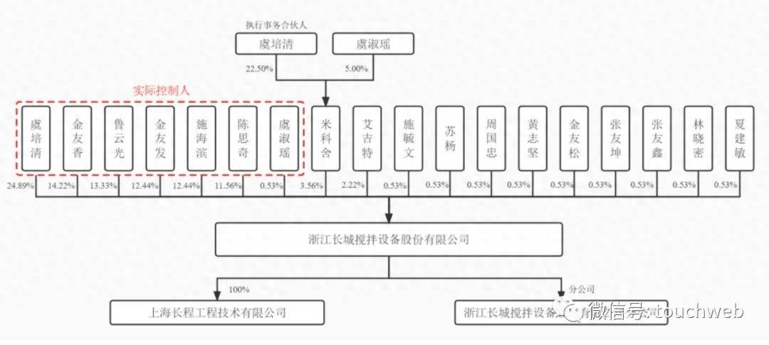 IPO前,长城搅拌实际控制人虞培清、金友香、鲁云光、金友发、施海滨、陈思奇及虞淑瑶合计直接及间接持有公司90.4%的股份。