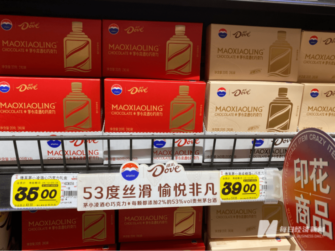 9月16日,茅台和德芙合作的茅小凌酒心巧克力正式上线。