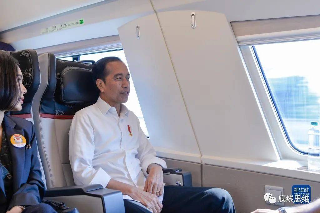 9月13日,印度尼西亚总统佐科乘坐雅万高铁高速动车组列车。(图/新华社)