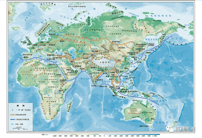 你就可以看到,东西的大通道、南北的走廊,加上海上的航线,连成一片,北面一直到北冰洋通道,南面一直到印度洋通道,全部连上,这是一个大网。过去没有“一带一路”的时候,这些事情我们想都不敢想。