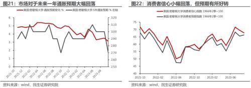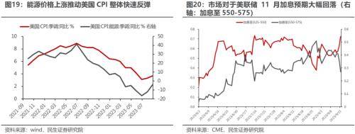 当下背离的点可能是“需求破坏”而并非紧缩。8月美国CPI反弹幅度小幅超市场预期,由于原油价格中枢抬升,推动能源价格明显上涨,而核心CPI则如预期般回落。数据公布后,市场对于11月美联储加息的预期小幅抬升,概率超50%。然而,市场周五的叙事逻辑出现明显逆转,一方面,密歇根大学统计的1年期通胀预期大幅回落,并首次跌破3%;另一方面,消费者信心指数小幅不及预期,有所下滑。一次CPI数据的超预期反弹,并不足以说服市场相信“通胀中枢长期抬升”,市场对于11月加息的预期大幅回落。当下市场更倾向于认为,货币政策进一步紧缩的必要性较低。