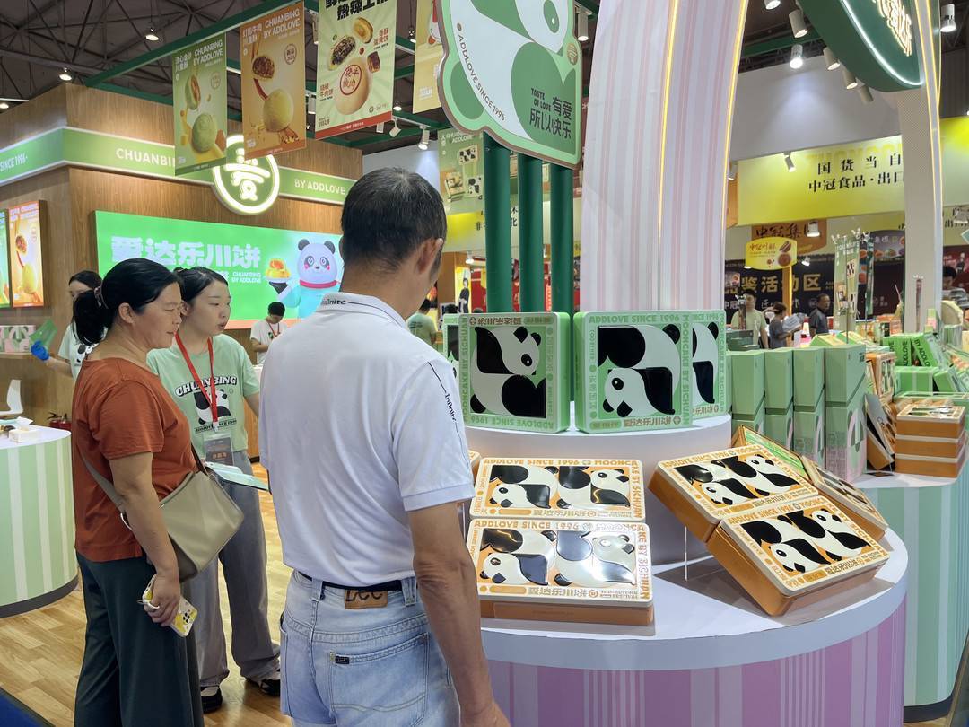 作为川味月饼的代表,爱达乐带来了黑金椒麻火腿川皇酥等麻辣鲜香的月饼参展,在包装上则采用了熊猫这一形象。爱达乐品牌中心推广负责人谯琨告诉记者,无论是从口味还是包装上,我们都注入了四川在地文化元素,希望可以获得消费者的喜爱。