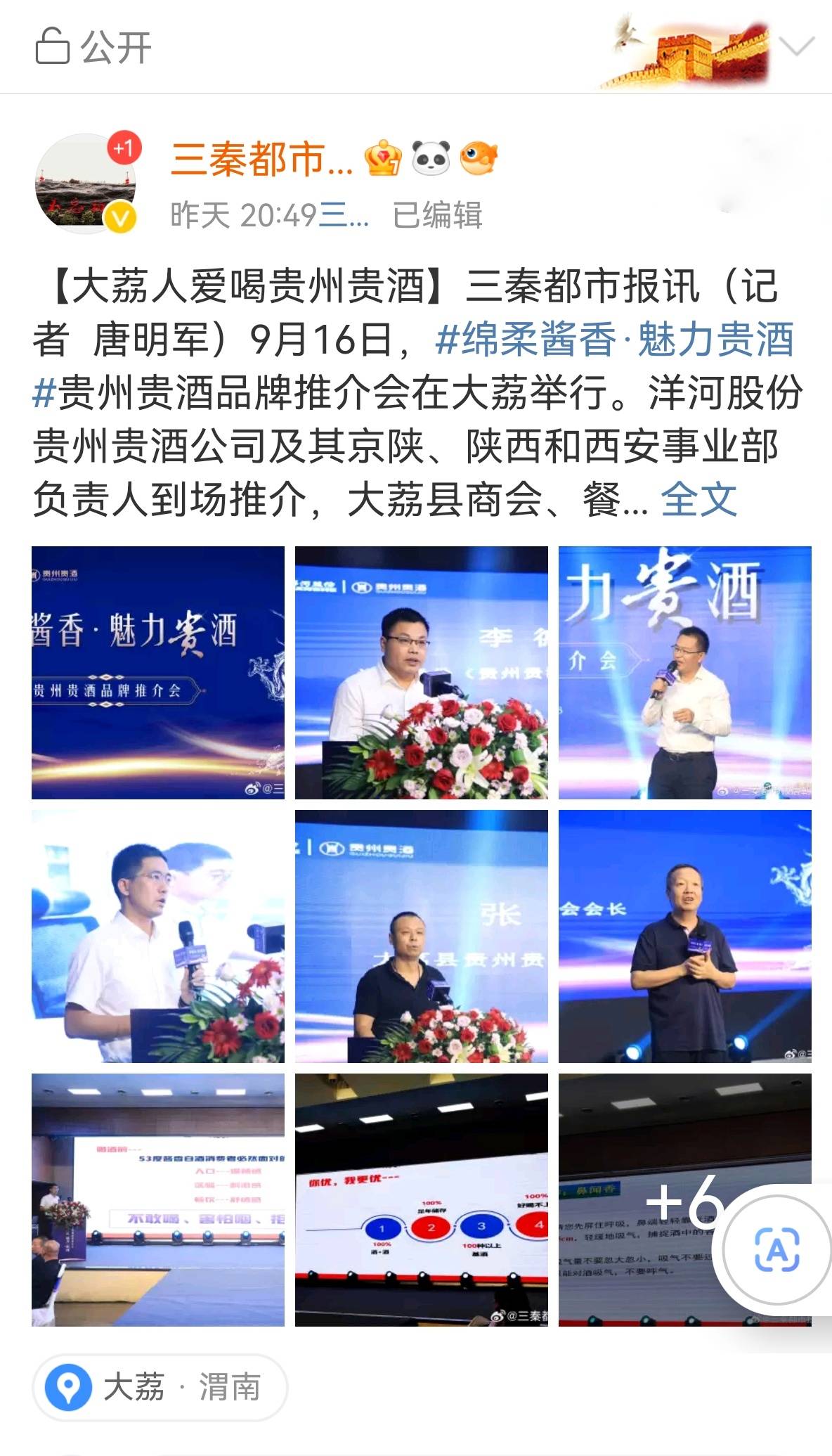 三秦都市报讯 9月16日,“绵柔酱香 魅力贵酒”贵州贵酒品牌推介会在陕西大荔县举办。洋河股份贵州贵酒公司及其京陕、陕西和西安事业部负责人到场推介,大荔县商会、餐饮业、白酒销售及相关领域代表200余人参加推介会。