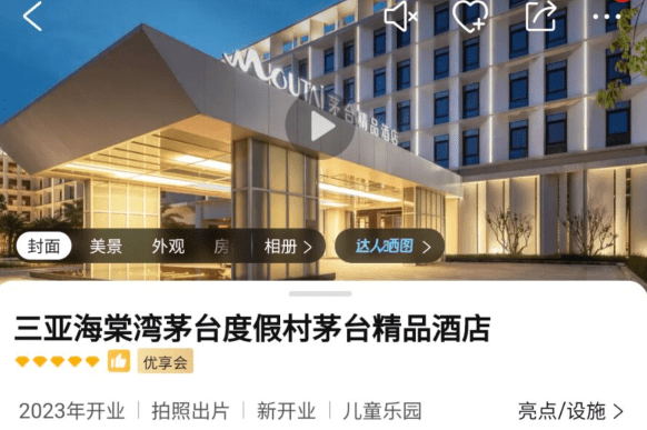 根据OTA平台公布的信息,此次促销套餐所涉酒店——三亚海棠湾茅台度假村精品酒店开业时间为2023年,由贵州茅台集团投资兴建,占地面积294.5亩,由奢华茅台尊品酒店、高端茅台珍品酒店、时尚茅台精品、旅居茅台典品酒店、会议中心、水上乐园等配套组成,是一家集住宿、餐饮、会议、旅游、亲子娱乐、休闲度假、文化展示、白酒品鉴等功能为一体的多元化度假酒店群。