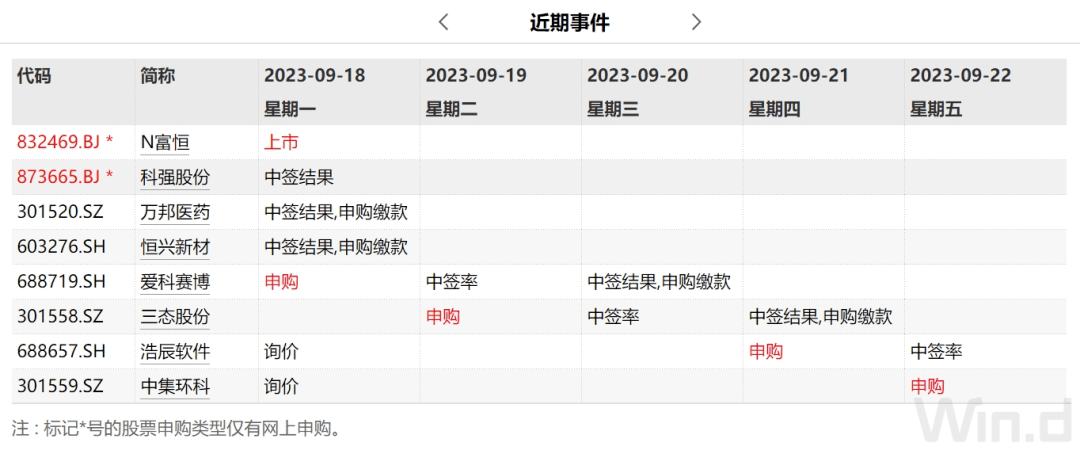 本周(9月18日-9月22日)A股市场4只新股发行,其中创业板2只,科创板2只。9月18日发行的是爱科赛博,9月19日发行的是三态股份,9月21日发行的是浩辰软件,9月22日发行的是中集环科。这4只新股累计发行数量共计约2.40亿股,预计募集资金金额共计33.32亿元。