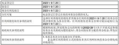 2、选择现金红利方式的投资者的红利款将于2023年9月22日自基金托管账户划出。
