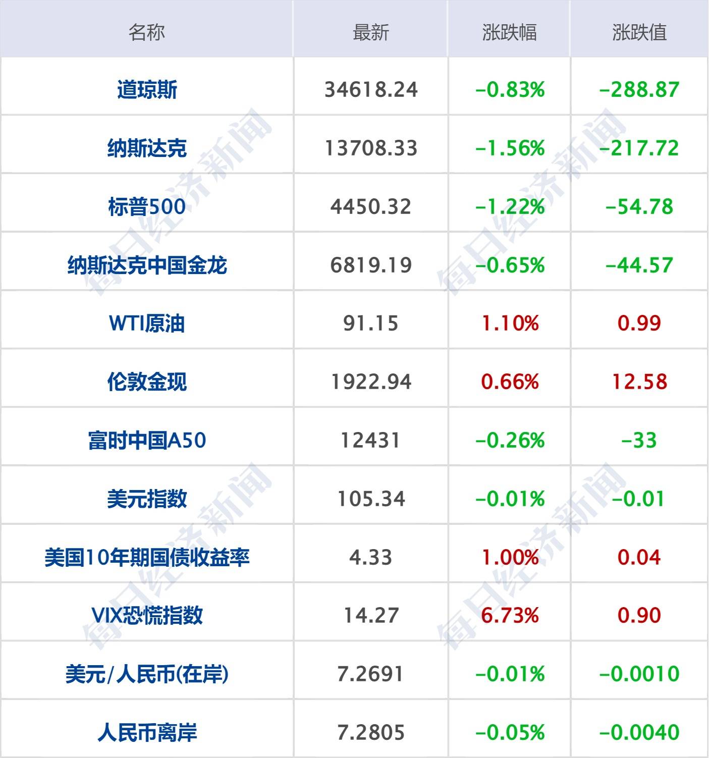 2、热门中概股多数下跌,纳斯达克中国金龙指数跌0.65%,上周累涨0.80%。唯品会、阿里巴巴、百度跌超1%,哔哩哔哩、富途控股、京东、爱奇艺、微博、网易、理想汽车、小鹏汽车小幅下跌。满帮涨超1%、拼多多、蔚来、腾讯音乐小幅上涨。