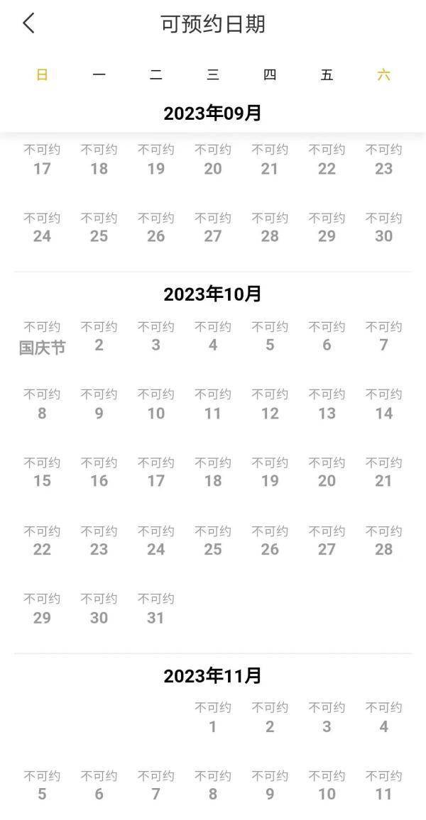 销售链接于晚8点正常上架,开售几乎“秒光”,可预约日期均显示“不可约”或“约满”,几分钟后商品链接页面再次显示“已下架”。