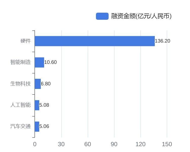 从已披露金额事件的融资规模来看,硬件最高,融资总规模约为136.20亿元人民币。其中半导体芯片研发制造商 「积塔半导体」 获135.00亿人民币 B轮融资。