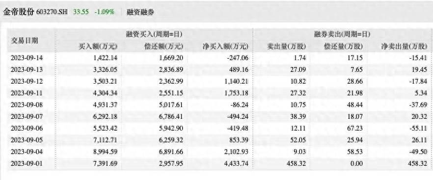 9月1日,金帝股份在上海主板市场上市,开盘之后一路上涨,曾经一度涨幅达到175.61%,但是很快股价就开始持续回落,下午收盘时只有每股48.27元。在盘后观察成交金额时,发现出现了融券净卖出量458.32万股,占了流通市值比为9.35%,融券余额达到2.21亿元。这些坚决的卖盘,让首日股价走势蒙上阴影,也让之后的交易日股价一路下跌。