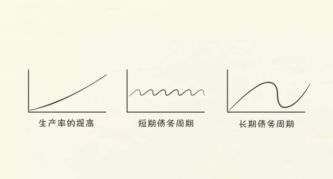 片中讲到,经济的三种主要动力为生产率的提高、短期债务周期、长期债务周期。