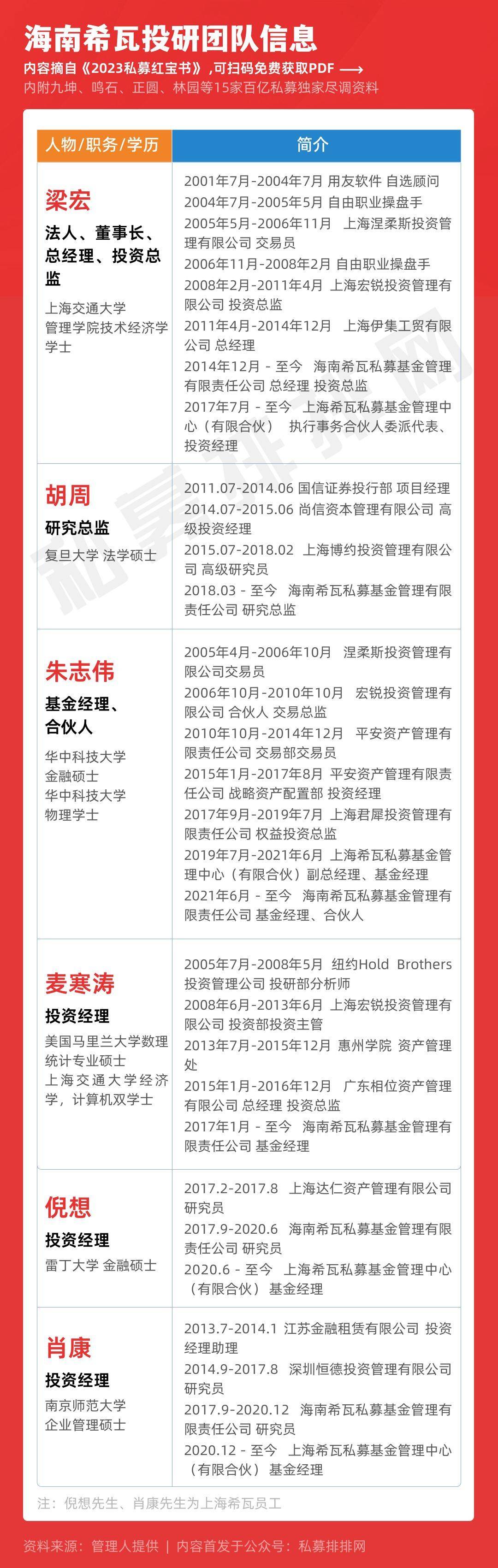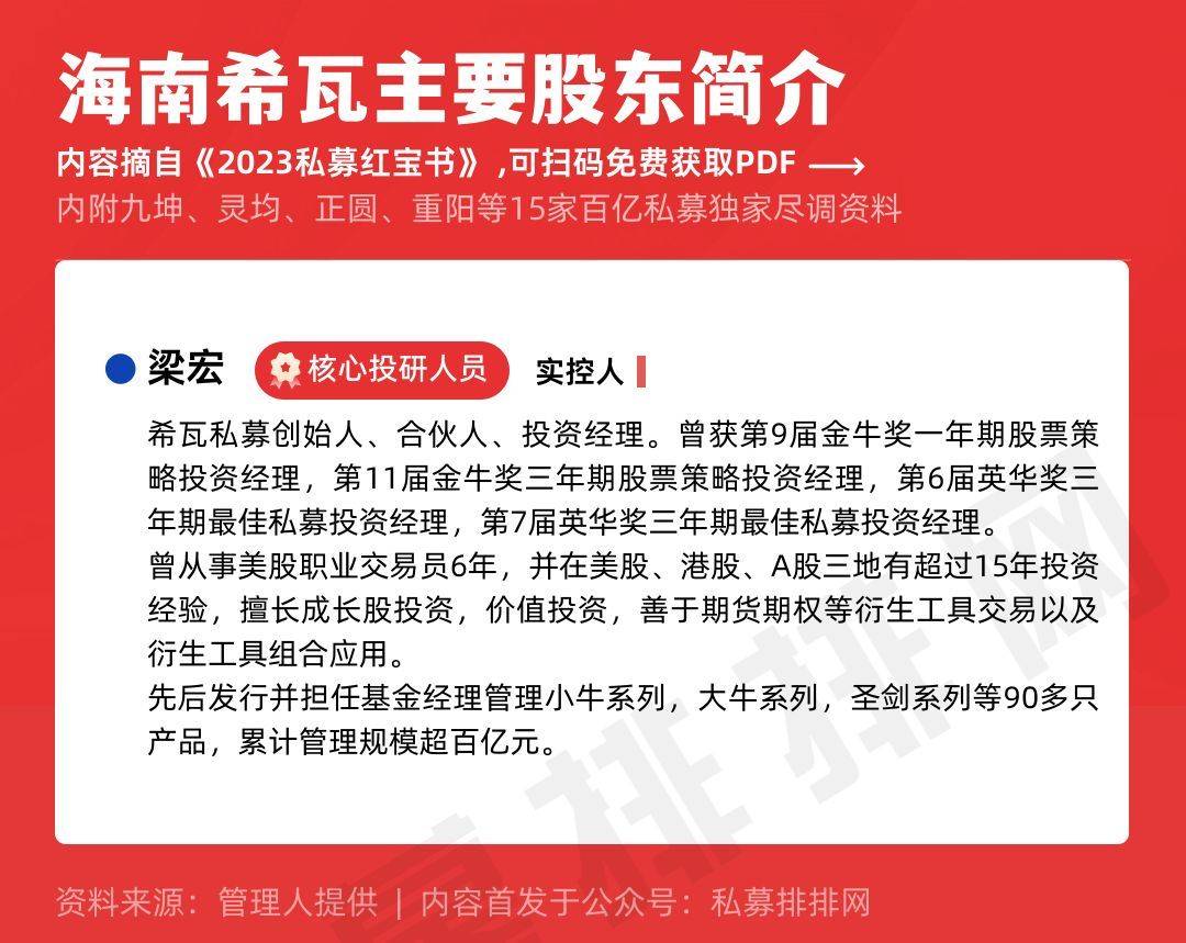 “遵循价值投资,在深入研究的基础上构建投资组合,在严格控制投资风险的前提下,力求为投资者获得长期稳定的投资回报”是海南希瓦的投资理念。公司创始人梁宏毕业于上海交通大学管理学院,曾从事美股职业交易员6年,并在美股、港股、A股三地市场超过15年投资经验,擅长成长股投资、价值投资。