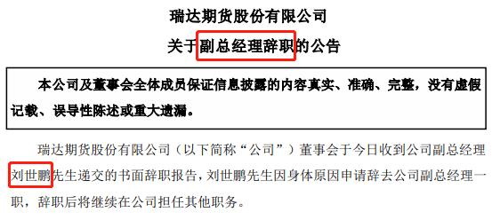 9月13日晚间,瑞达期货发布关于副总经理辞职的公告。