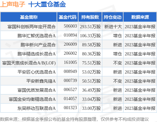 重仓上声电子的前十大公募基金请见下表: